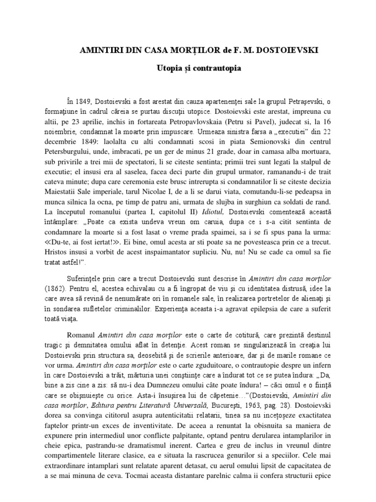 Amintiri Din Casa Mortilor Feodor Mihailovici Dostoievski Pdf