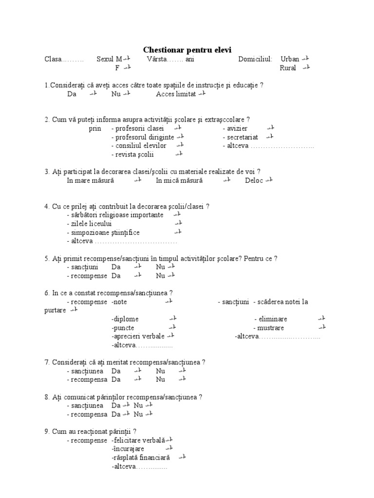 Chestionarul Proiectului Idea In Romaneste Word Document 2
