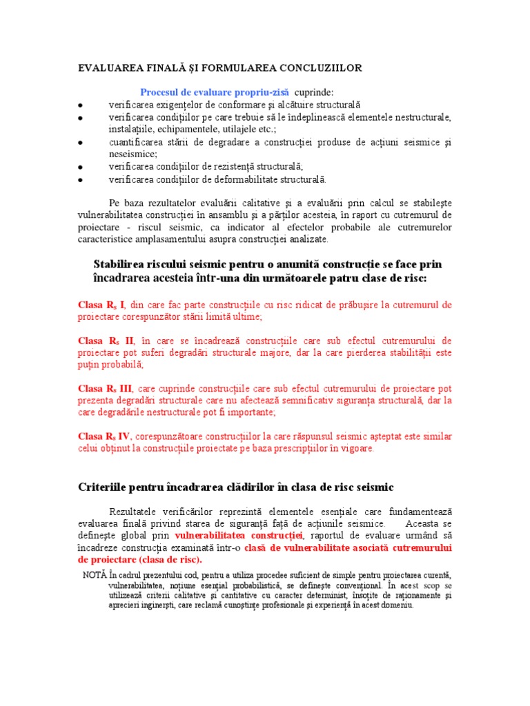 4 Evaluarea Finala Si Formularea Concluziilor Incadrare In Clase De Risc Seismic Continutul Raportului