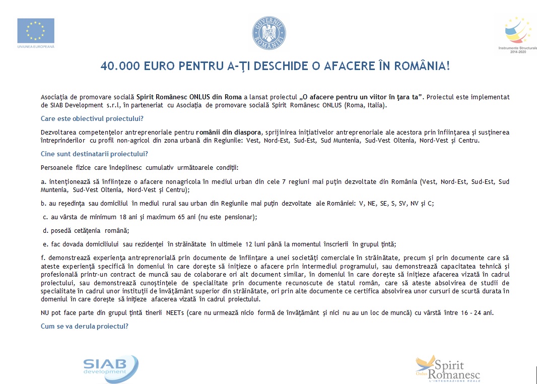 O Afacere Pentru Viitor In ţara Ta Cursuri Gratuite Si Posibilitatea De A Avea 40 000 De Euro Pentru A Ti Deschide Afacerea In Romania
