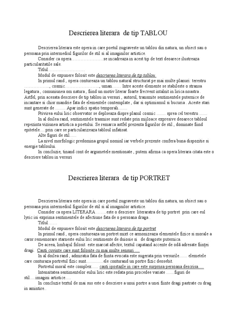 Descrierea Este De Tip Tablou Sau Tip Portret Brainly Ro