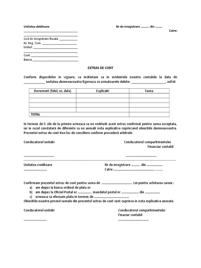 Confirmare De Sold Model Extras De Cont Clienti Docs