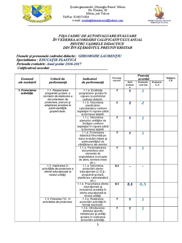 Doc Antet Fișa Cadru De Autoevaluare Evaluare In Vederea Acordării Calificativului Anual Pentru Cadrele Didactice Din Invățămantul Preuniversitar Cosmin Vancica Academia Edu
