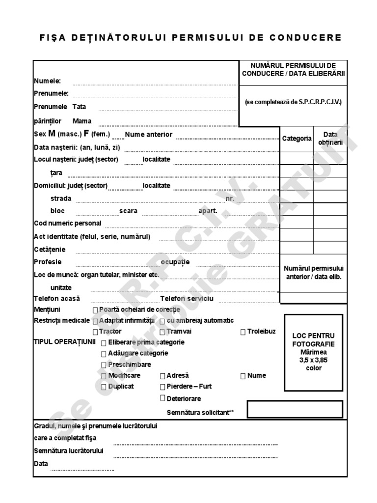 Fisa Deţinătorului Permisului De Conducere Formular Word Formulare Tipizate Gratuite