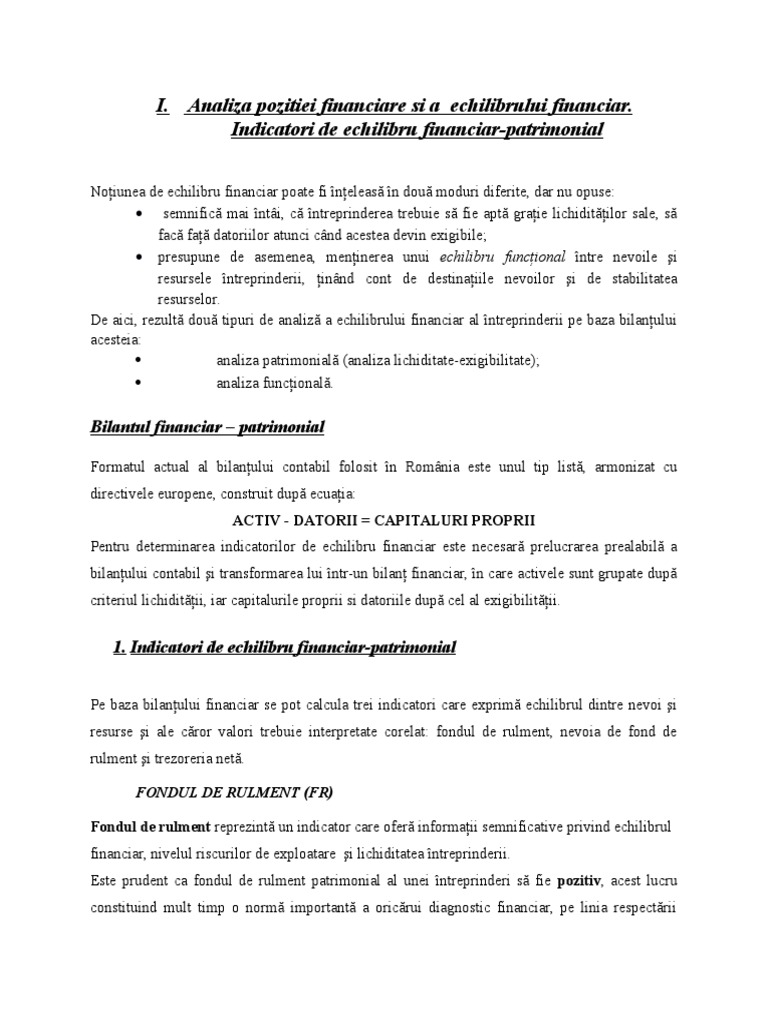 Echilibrul Financiar Fondul De Rulment Si Ratele Re