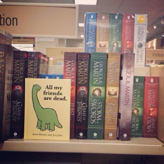 George R R Martin Tweeted This With The Caption Well Played Bookstore Well Played I All My Friends Are Dead Game Of Thrones Funny Game Of Thrones Fans