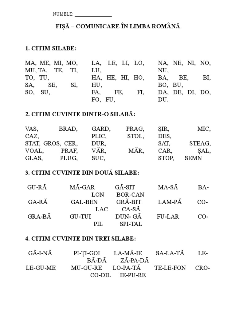 Invatam Sa Citim Pe Silabe Fise De Lucru