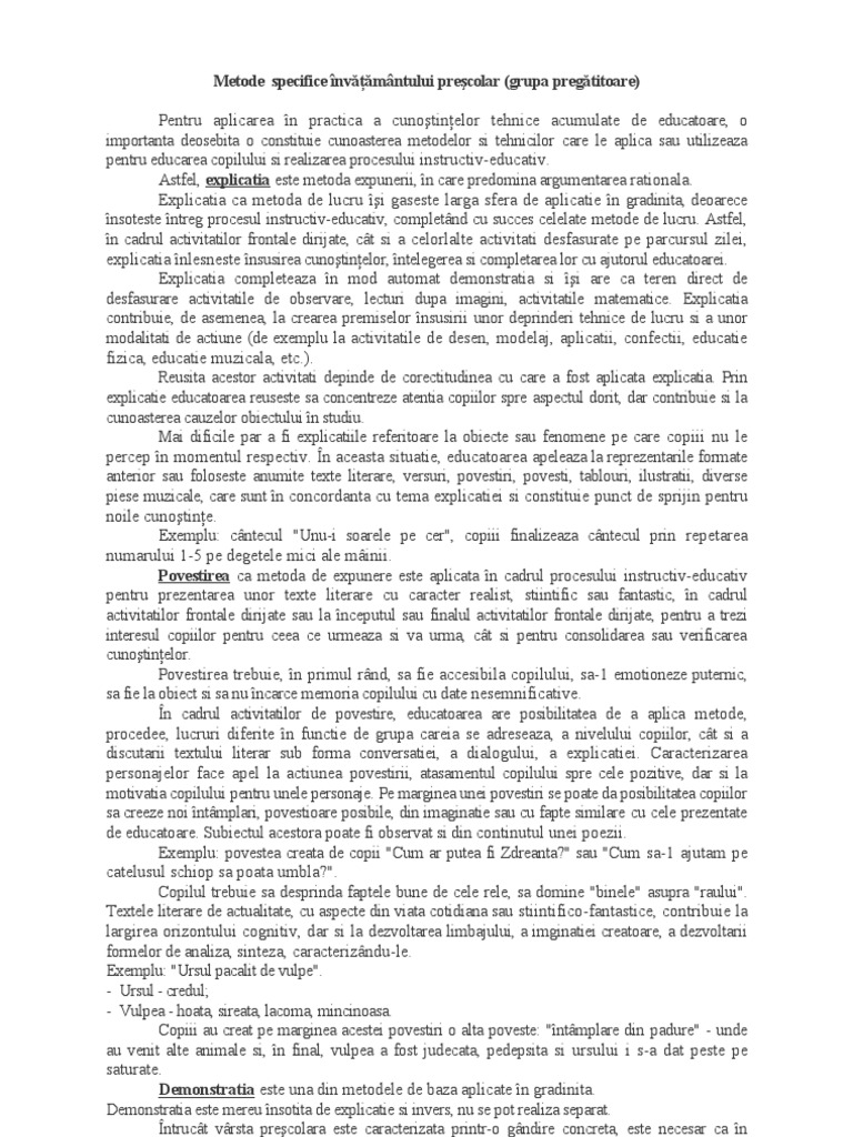 Metode Specifice Invatamantului Prescolar