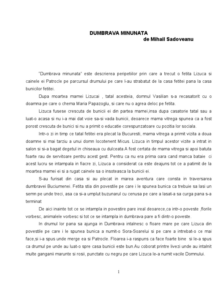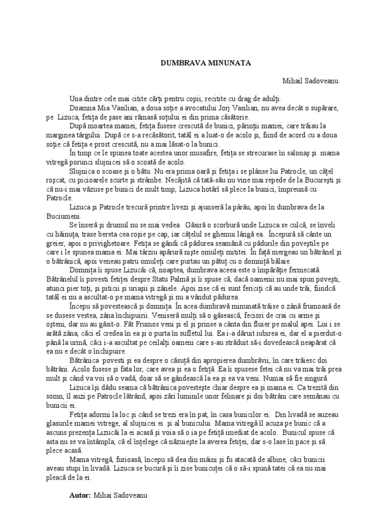Dumbrava Minunata De Mihail Sadoveanu Pdf Document