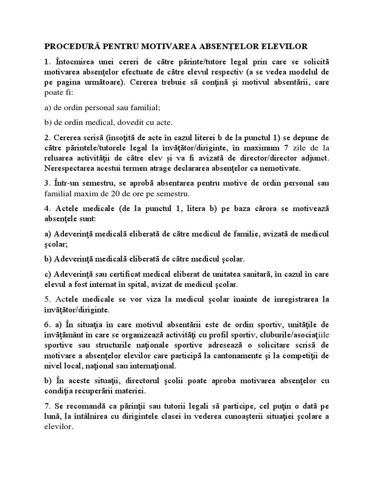 Procedura Cereri Motivare Absente