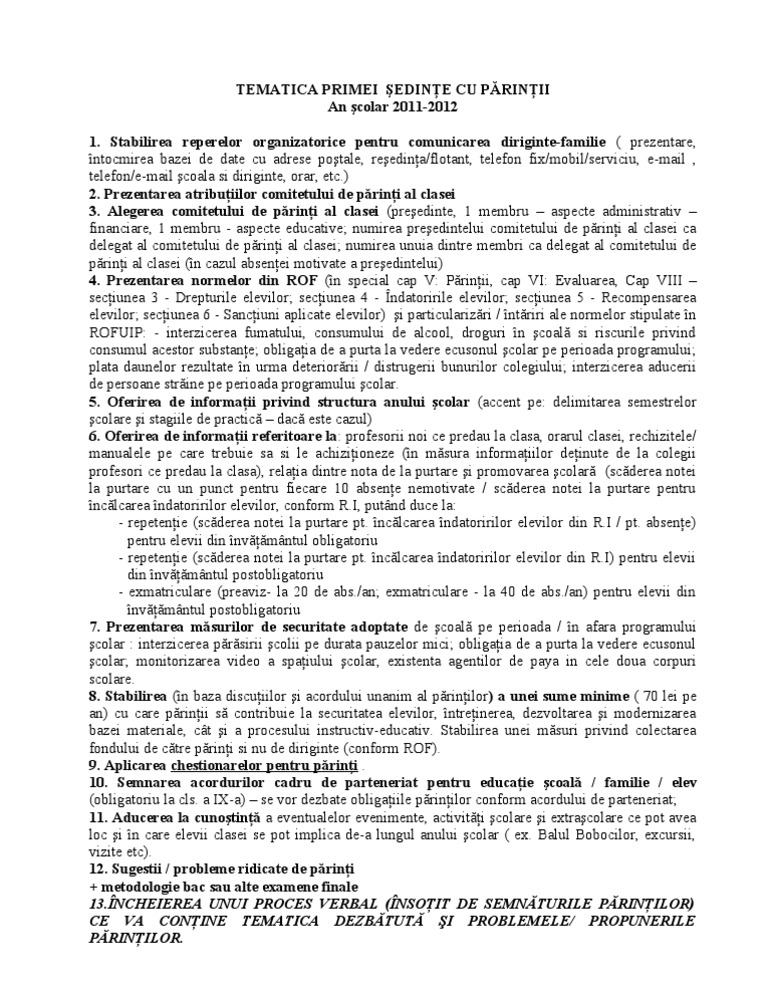 Proces Verbal Sedinta Cu Parintii 2018