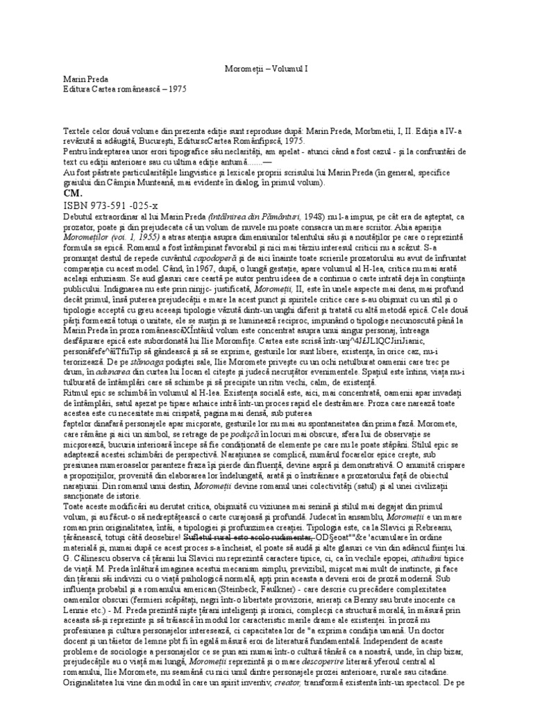 Morometii Vol 1 2 Marin Preda Pdf Carte Pdf Citești Instant