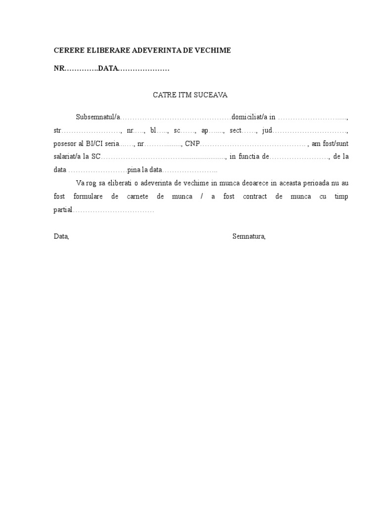 Model Cerere Eliberare Adeverinta Vechime In Munca
