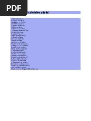 Papagalul Si Celelalte Păsări De Grigore Alexandrescu Poezii Si Versuri