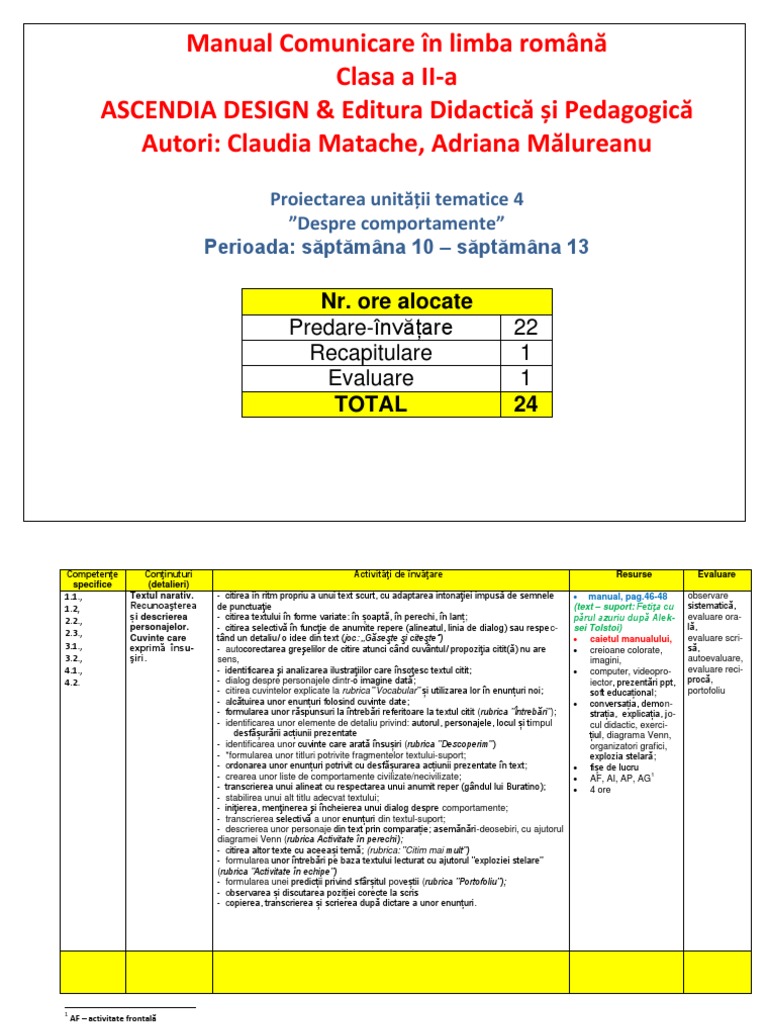 Planificare Pentru Manualul De Comunicare In Limba Romană Clasa I Edituradp Ro