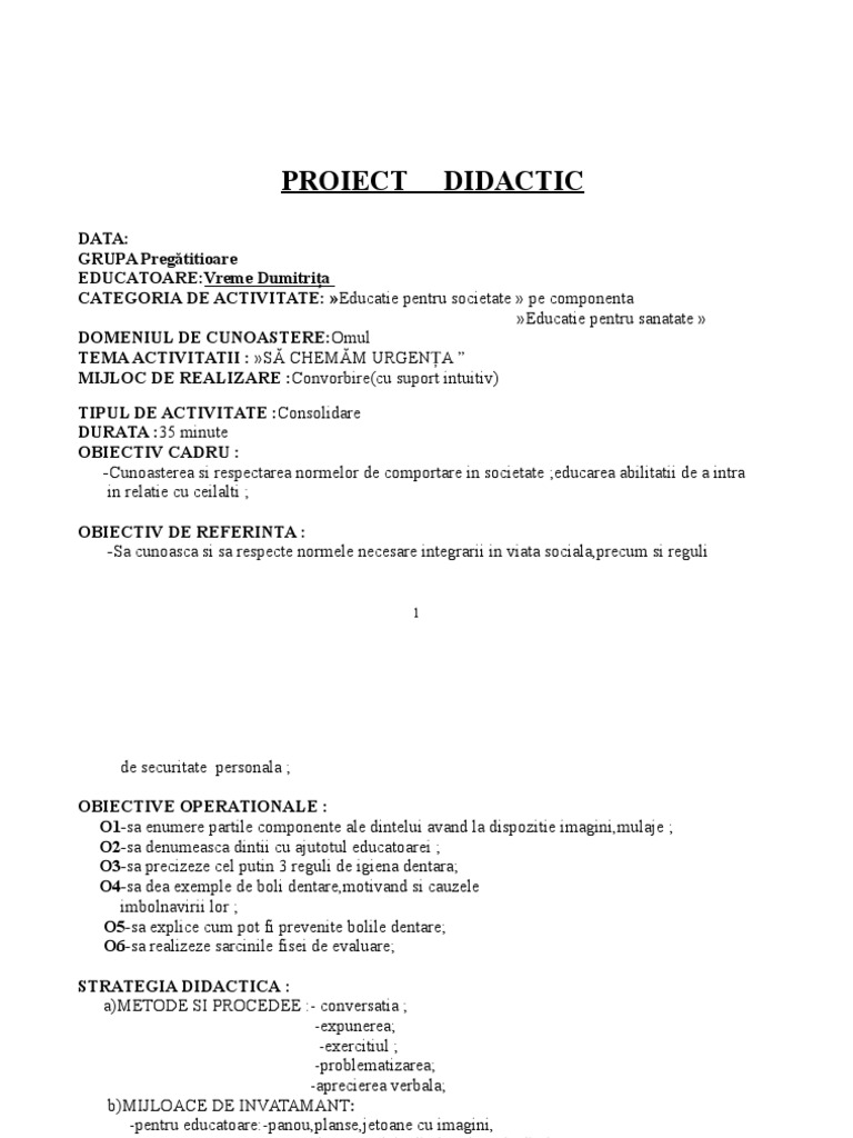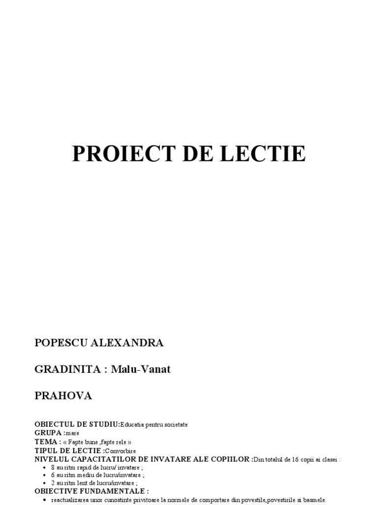 Proiect Didactic Educatie Pentru Societate Convorbire
