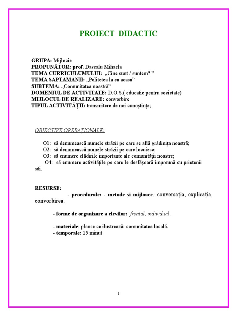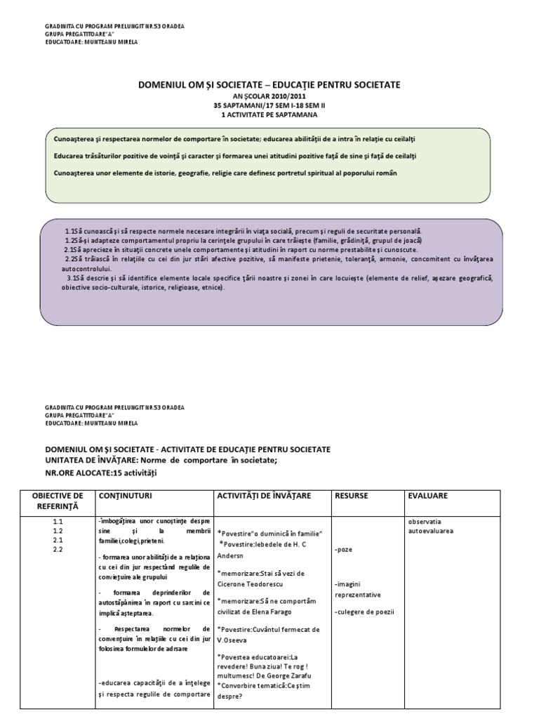 Munteanu Mirela Proiectare Pe Unitate De Invatare Dos Educatie Pentru Societate Pdf