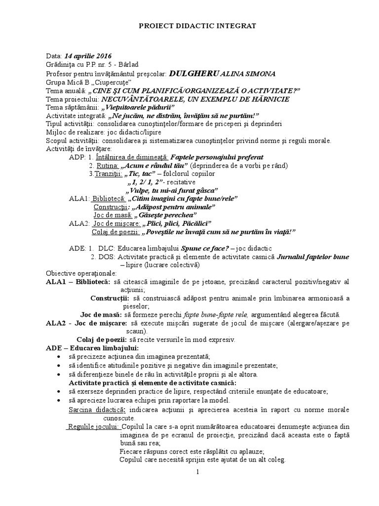 Proiect Didactic Convorbire Cum Mă Simt Angel4love Alina 04 02 2017
