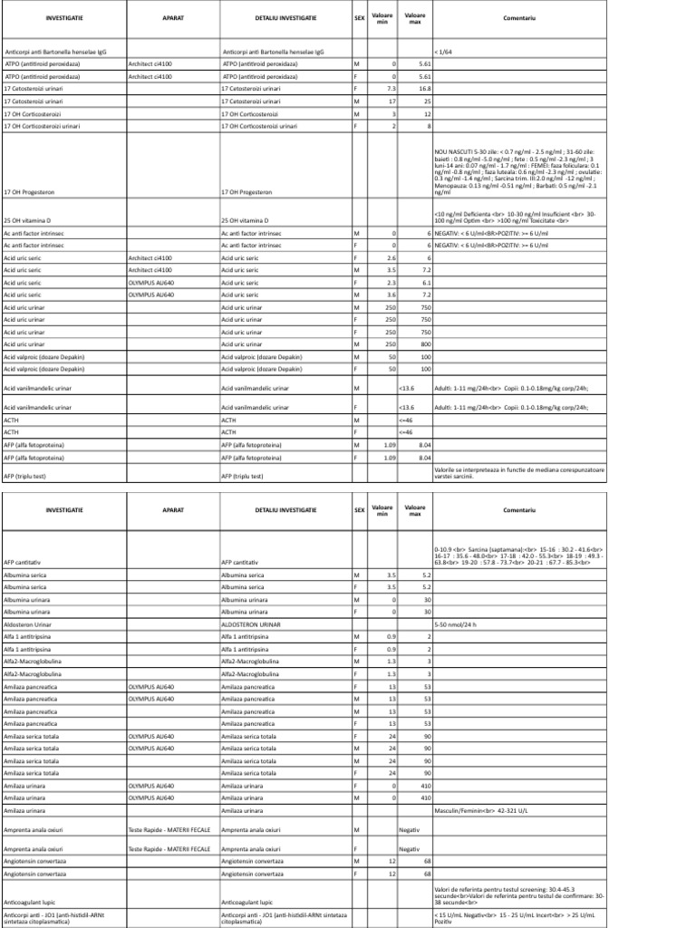 A1 Analize Valori Normale
