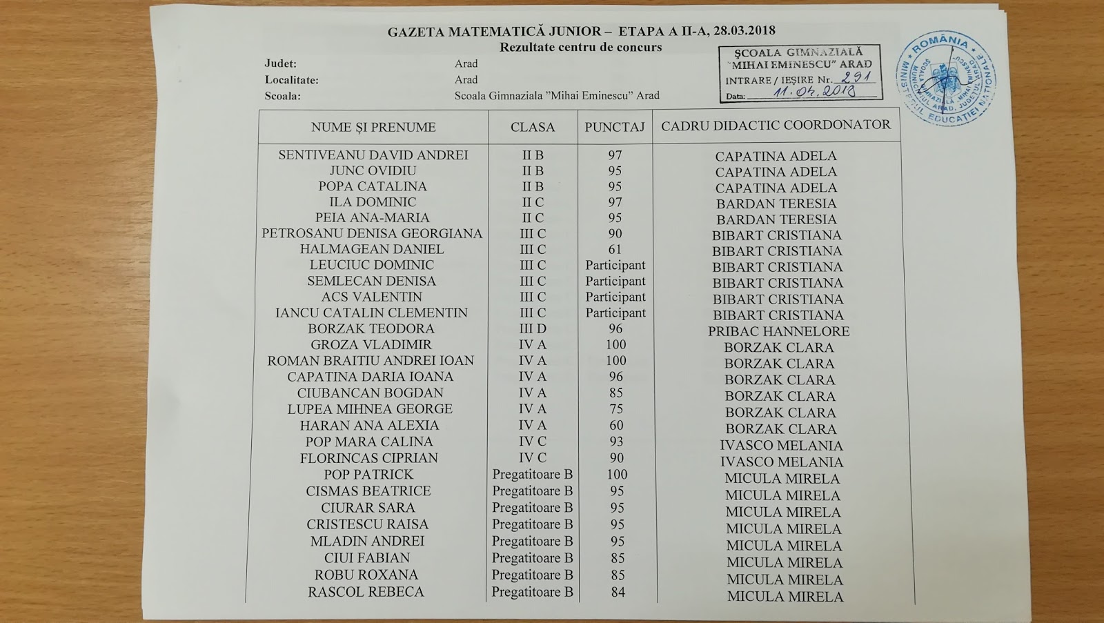 Scoala Gimnazială Mihai Eminescu Arad Rezultatele De La Concursul Gazeta Matematică Junior
