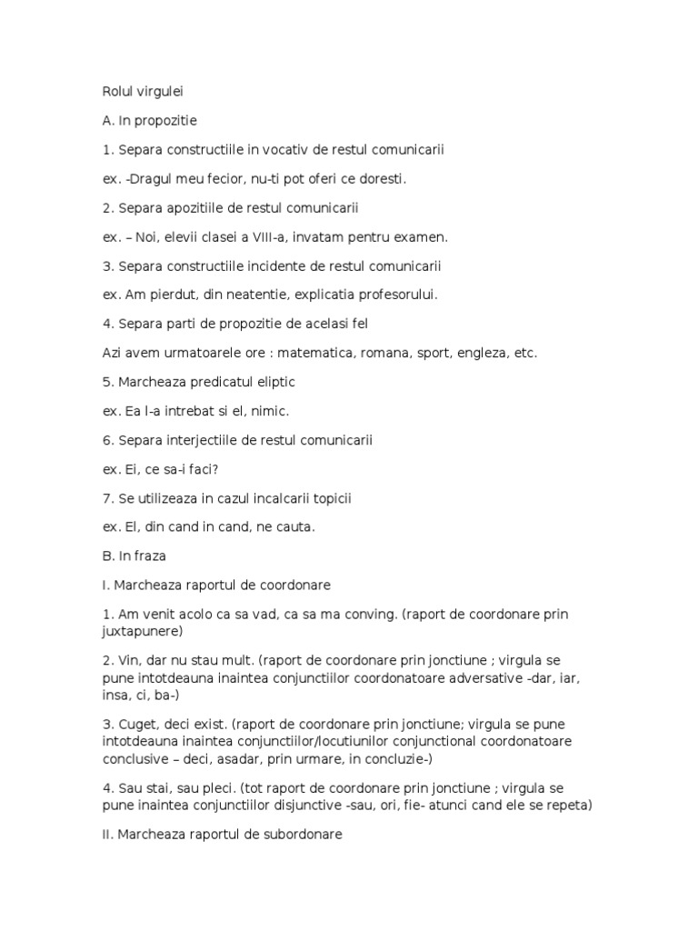Rolul Virgulei A In Propozitie 1 Separa Constructiile In Vocativ De Restul Comunicarii Ex