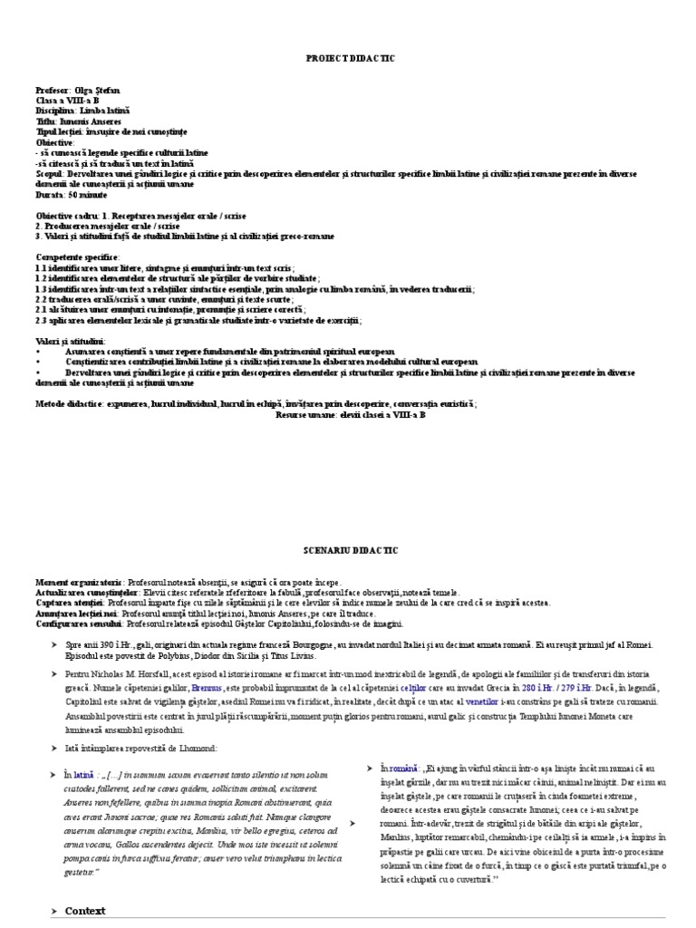 Proiect Didactic Latina