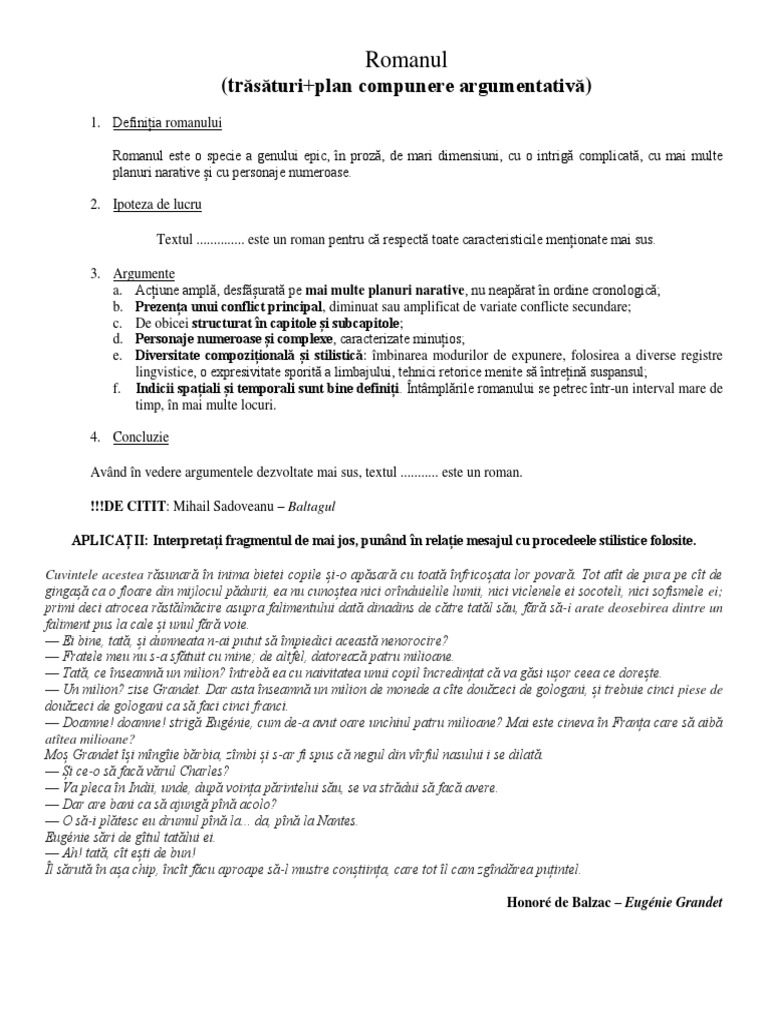Romanul Trasaturi Aplicatii