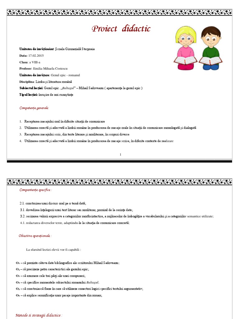 Proiect Proiect Didactic Clasa A 9 A Morometii Romana 346108