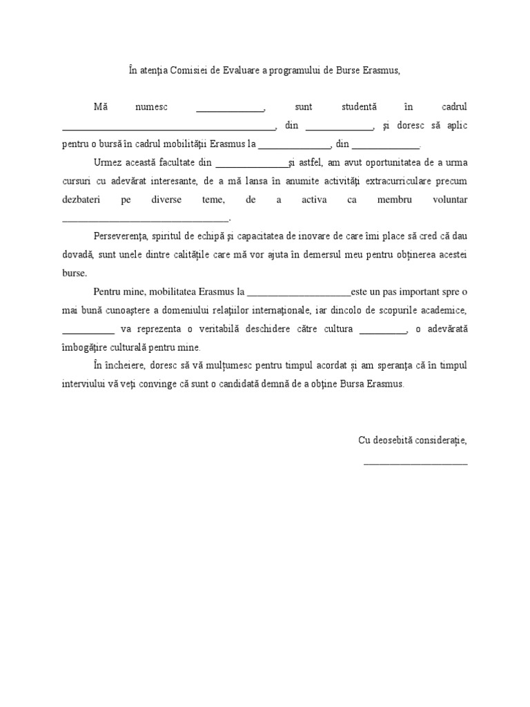 Scrisoare De Intentie Erasmus Exemplu
