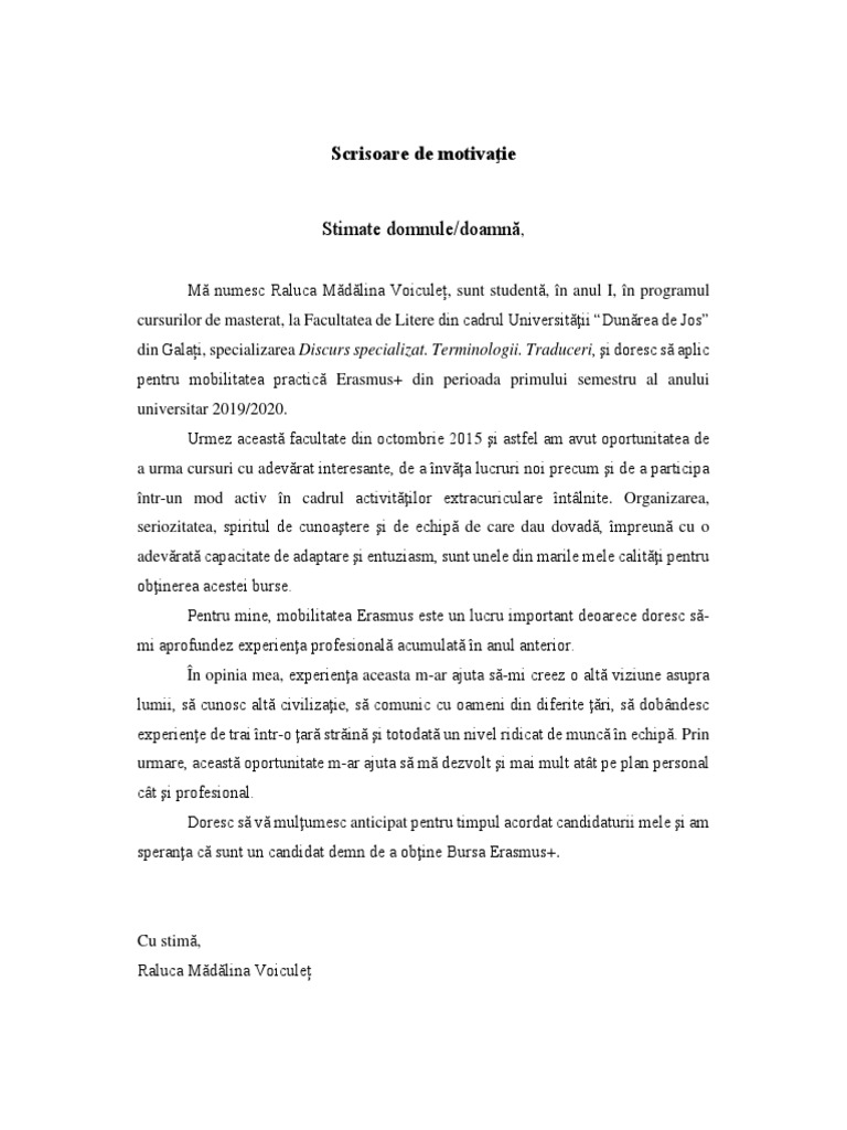 Scrisoare De Motivatie Erasmus