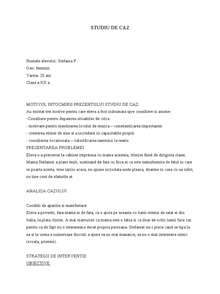 Referat Studiu De Caz Consiliere Psihologica Psihologie 122043