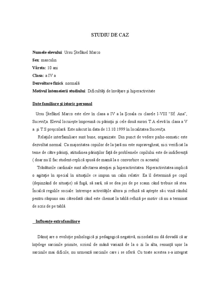 Studiu De Caz Dificultati De Invatare