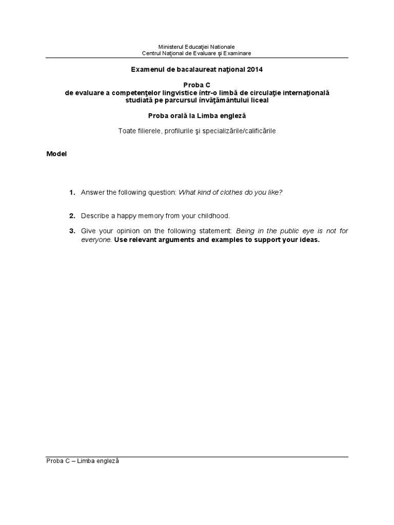 Bac 2014 Model Subiecte Limba Engleza