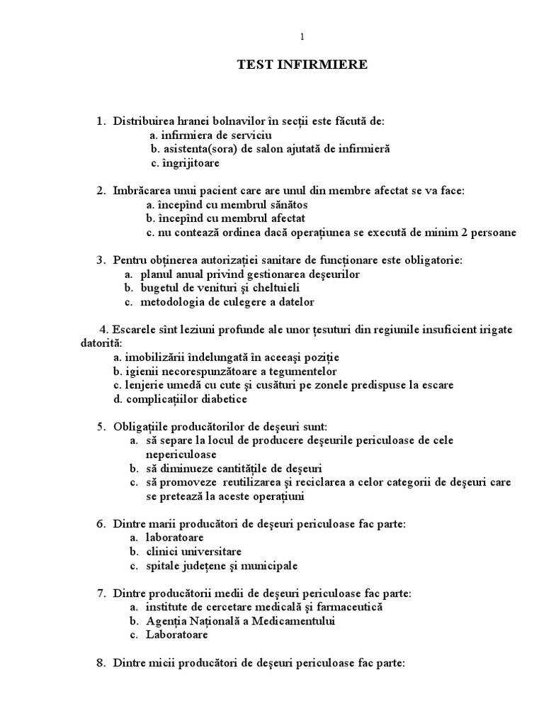 Test Grila Infirmiera Si Raspunsuri
