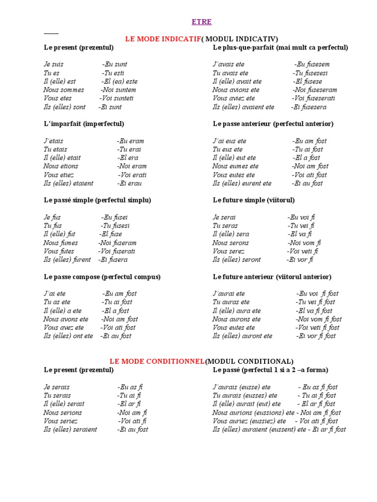 Verbe Conjugate In Franceza